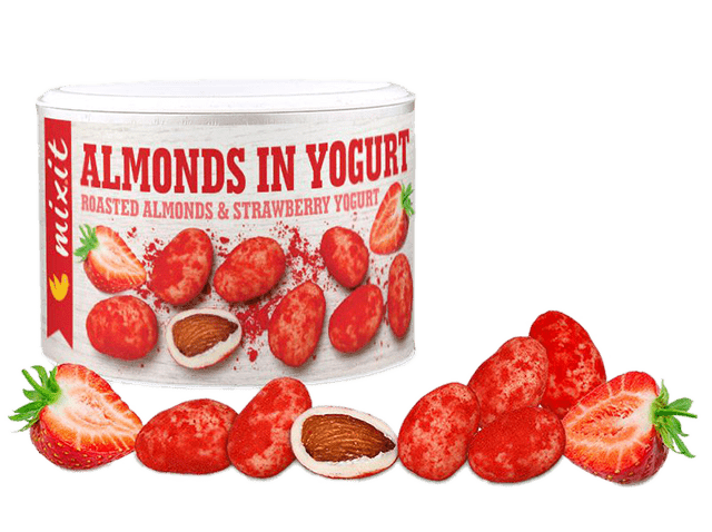 Nejprve se vám na jazyku rozpustí osvěžující ovocný prach z mrazem sušených jahod, který zjemní bílá čokoláda a prostupující jogurtové tóny. Pod vrstvou čokoládového blaha s jogurtem a jahodami čekají pražené mandličky. Každé jejich křupnutí vás přesvědčí o tom, že to nebude láska na jedno sousto.
